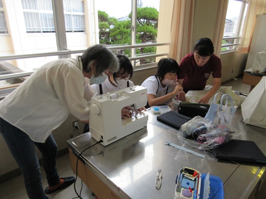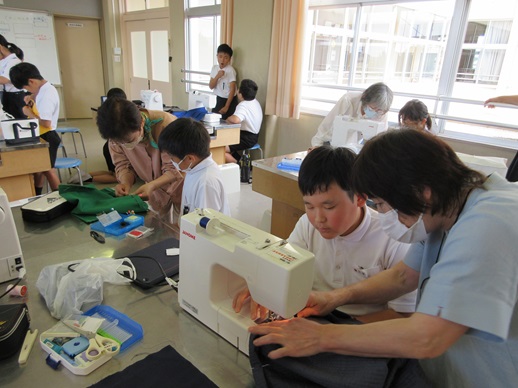 6年生がミシンボランティアの方と一緒にミシン学習を行いました。 |