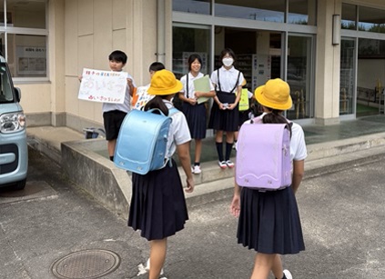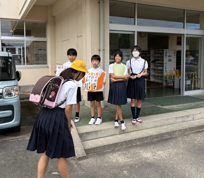 高学年を中心に、朝のあいさつ運動が始まりました。 |